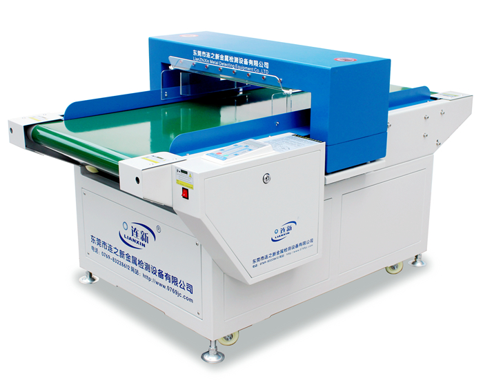 (通常,磁感應式金屬檢測機-檢針機或鋁箔金屬檢測機,因應用的需要,紡織行業通常都會裝配一些非鐵磁性金屬輔料,如銅和鋅合金、鋁、不銹鋼制作的鈕扣、拉鏈而采用了永磁技術,它能放過這些非鐵合金的輔料,只檢測這些紡織品中殘留的斷針殘片,能較大限度的確保了消費者的安全。因此大多數的紡織制品都會選擇這類金屬檢測機即檢針機,如:連之新公司生產的JZQ-7300型全鋼架輸送式檢針機、JZQ-8630K、9003 9006 9008等型號的檢針機都是這種金屬檢測機)